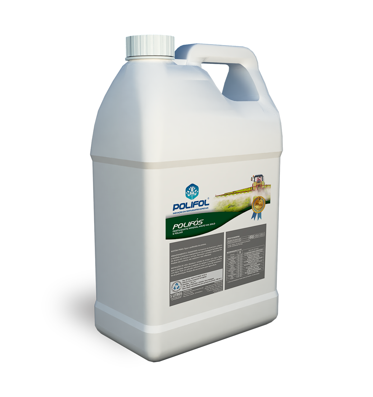 - Produto líquido e de rápida liberação, podendo ser aplicado em qualquer época do ano, sem necessidade de umidade no solo para solubilização do Fósforo (P).